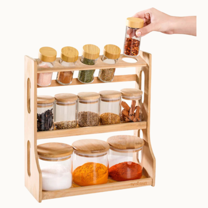 Set de 13 Pots à Épices Hermétiques avec Organiseur en Bois