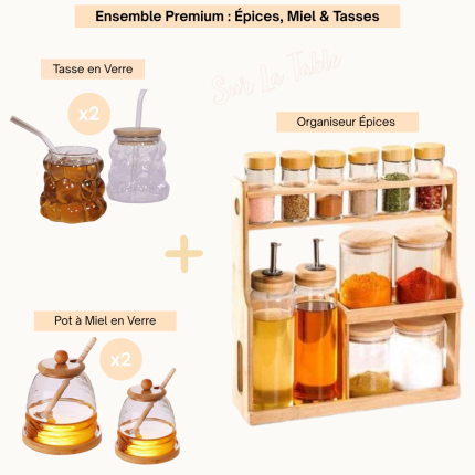 Pack Cuisine Naturelle : Tasses, Pots à Miel & Organiseur à Épices