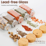 - Organisateurs d’épices : racks compacts et esthétiques, équipés de pots en verre hermétiques avec couvercles en bambou et joints en silicone.